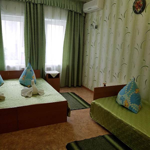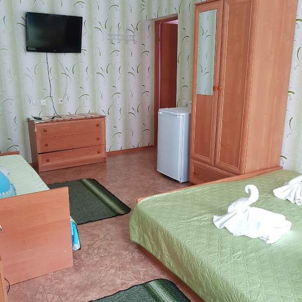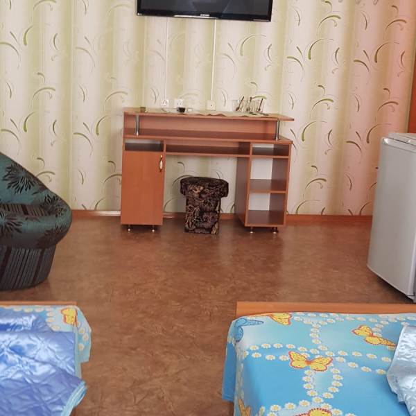 Кровати раздельные или семейная и одноместная, холодильник, телевизор, кондиционер, постельное бельё, полотенце, банное и лицевое, сан. узел рассчитан на три номера, всегда чистота и порядок, дезинфекция и уборка 3 -4 раза в день и в течении дня поддерживается порядок, стирка в отдельных отведенных местах.